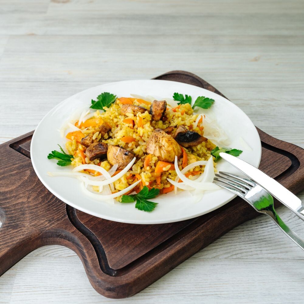 Постный плов с грибами